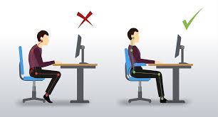 While you are reading this, you will most probably be in front of a computer, on your laptop, iPad or even using your phone….now just spend a minute thinking about your posture: how are you sitting? Is your back straight or twisted to one side? Are you on a chair or slumping on a sofa with the laptop on your lap? How close are you to the screen? Are your hands on a keyboard or a mouse? How comfortable do you feel? You would probably have heard a lot about keeping a ‘good’ posture when using your computer. So what is ‘good’ posture? Well this is the usual advice: The picture below summarises some of the ‘key points of the less straining posture for your back: